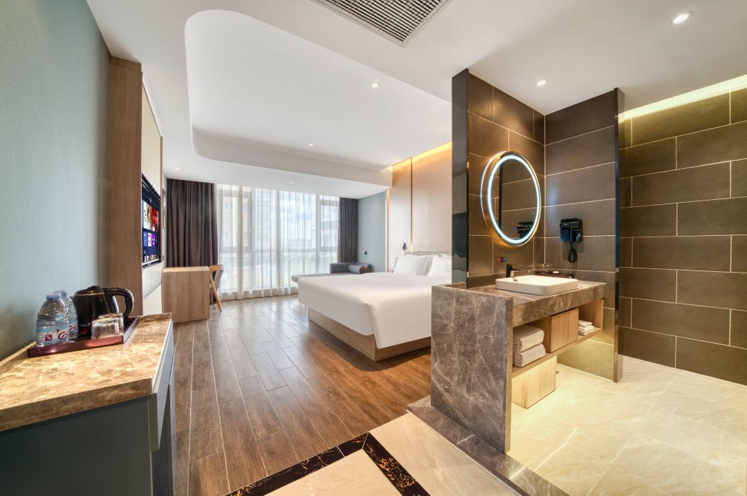 南平楠悦左岸酒店位于南平市武夷新区中心地段,离南平市政府一公里,离武夷山风景区入口四十分钟,到南平市高铁站十分钟,地段优越闹中取静。