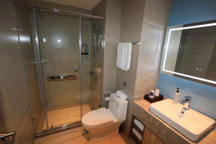 独立淋浴间,针线包,书桌,国内长途电话,电视机,多种规格电源插座,拖鞋,电热水壶,免费瓶装水,空调,有线频道,免费洗漱用品(6样以上),24小时热水,手动窗帘,床具:毯子或被子,房间内高速上网,遮光窗帘