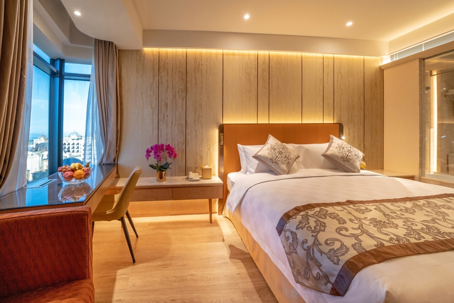 澳门金龙酒店地处新口岸,属澳门高速发展地段,交通八达。酒店四周消闲娱乐和美食场所丰富,毗邻金莲花广场、赛车博物馆、旅游活动中心、渔人码头和科学馆;往返港澳码头只需5分钟车程,乘车往澳门国际机场或拱北关只需20分钟;附近设有多条巴士路线往返市内及离岛各区名胜和观光点。 澳门金龙酒店环境优雅,为宾客提供一个舒适、温馨的休息环境。 酒店内同时配备健身室、室外游泳池(位於主楼四楼)等,为您宾客来便捷、舒心的住宿体验,并在此得到全身心的放松。