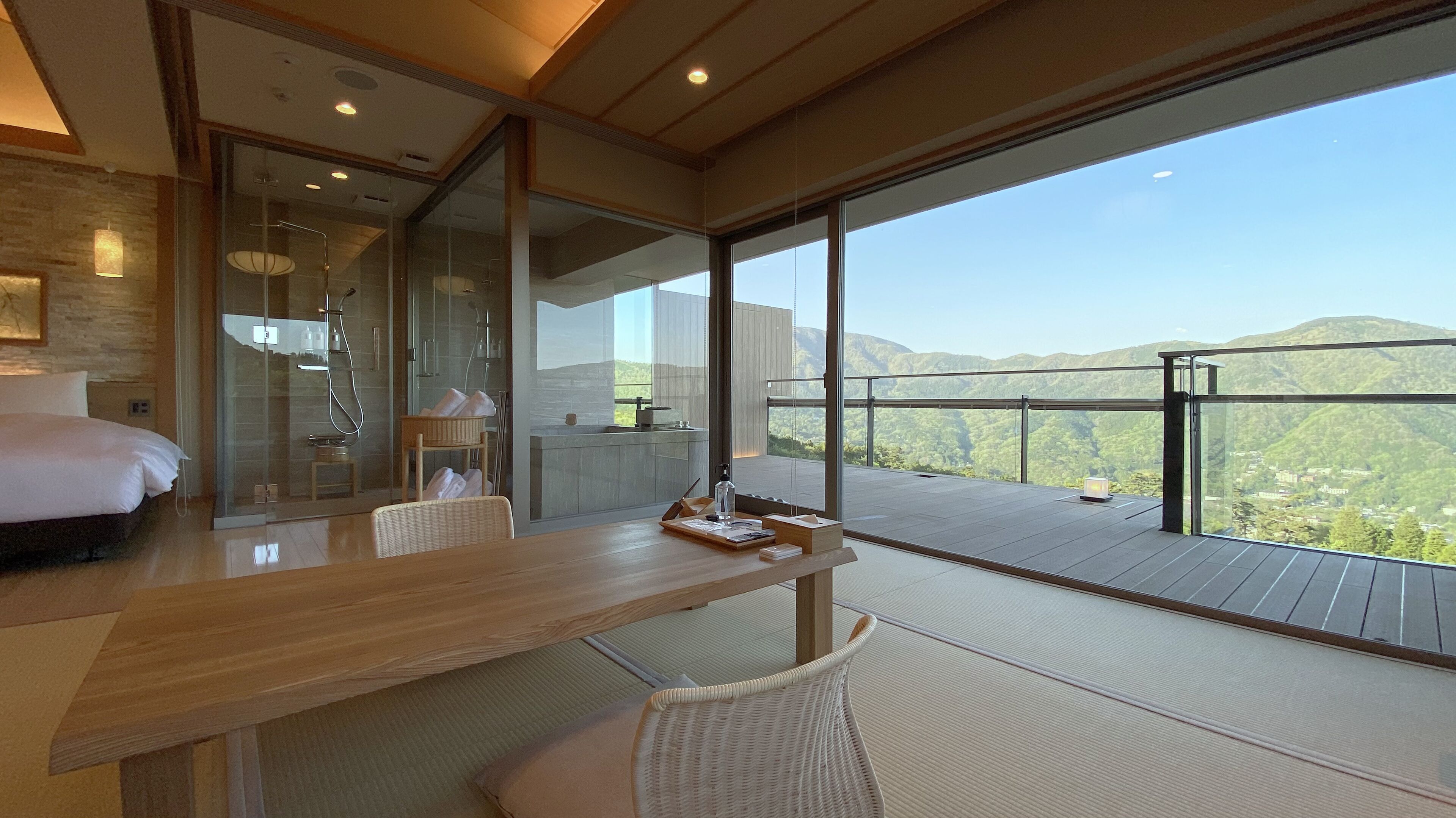 客房有 18 间客房提供室外私人热水浴缸和液晶电视。您的卧床备有羽绒被和高档床上用品。提供卫星频道和平板电脑,可满足您的娱乐需求;同时提供免费无线网络,方便您与朋友保持联系。便利设施包括保险箱和独立的起居区;而且每天提供客房服务。