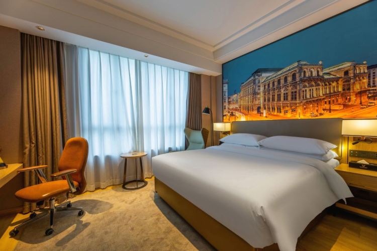 维也纳酒店是维也纳酒店公司旗下中高端商务酒店品牌,领军品牌。推出的5.0产品在保留原有品牌亮点基础上,让品牌回归纯粹与经典,以“智能、绿色、健康、环保、共享”的产品理念紧跟时代需求与行业趋势变化。维也纳酒店5.0版,外立面门楼方拱有致,V形优雅音乐主题LOGO映入眼帘,法式立体几何方型顶、经典对称拱形落地窗、香槟金流线接踵而至,使宾客瞬间入画,沉浸在简欧风情营造的异域情境中。大堂贵气典雅,将年轻活力的欧式元素充斥于各区间色块中,使其更符合年轻人对于酒店入住体验更好的高性价比恒存需求。古典乐章穿堂而过流连于耳畔,贵族风欧洲背景壁画结合欧式殿堂拱壁水晶灯展示古典文化和现代工艺的碰撞,米黄愉悦色休闲公区是宾客安心暂时依靠的休憩之地。暖色系灯光,细腻线条,简约空间,更富层次和舒适,优美的走廊艺术画,让酒店设计更具独特性。庄园轻居式客房整体空间采用米白+原木色调,简化的欧式线条和装饰,点缀logo的珊瑚橙,布置着欧洲南部庄园风情画、多级调节柔和阅读灯、休闲风米橙沙发躺椅和自然呼吸仿木纹地板,健康灵动的空间,清雅不失活力。5.0升级不仅传承了原维也纳被广泛认知的品牌亮点,而且让品牌回归纯粹与经典,并以一片赤诚之心,奉献出真正以客户体验为的高品质产品。